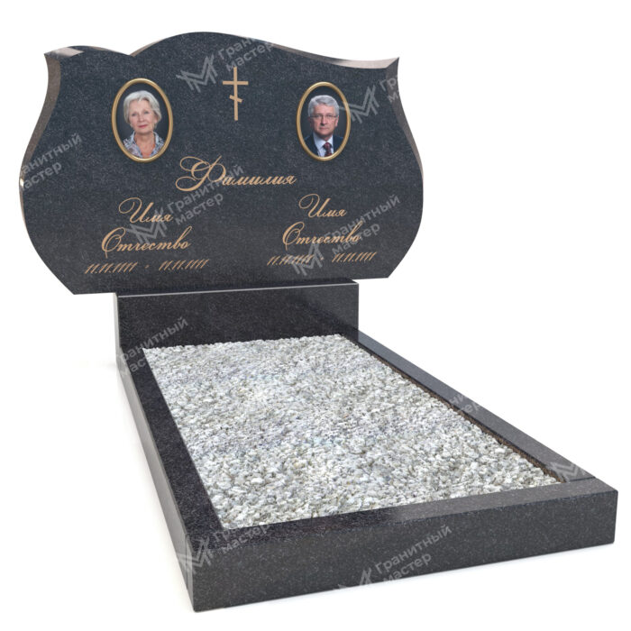 Форма В-9, эта нестандартная резная форма горизонтального памятника с плавными скруглениями по бокам, на эту стелу можно разместить два и более портрета. Хорошо смотрится с толщиной камня 8 см и более. Возможны изменения размеров и изготовление памятника из другого вида гранита.