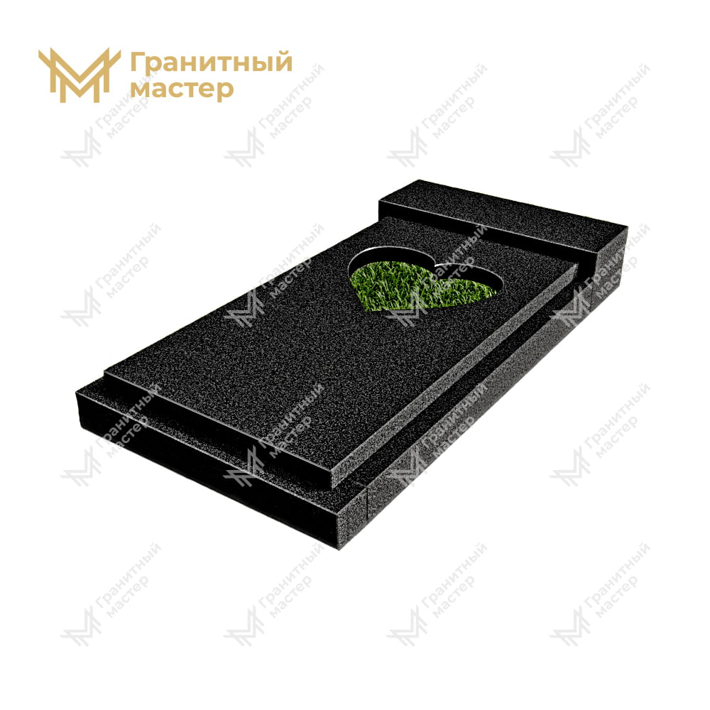 Надгробная плита ПФ-1 классической формы с вырезом в виде сердца, устанавливается на могиле прямо над захоронением. Изготавливается из цельной плиты чёрного карельского гранита диабаз. Часто надгробная плита дополняется рисунками, эпитафиями или декорируется аксессуарами.