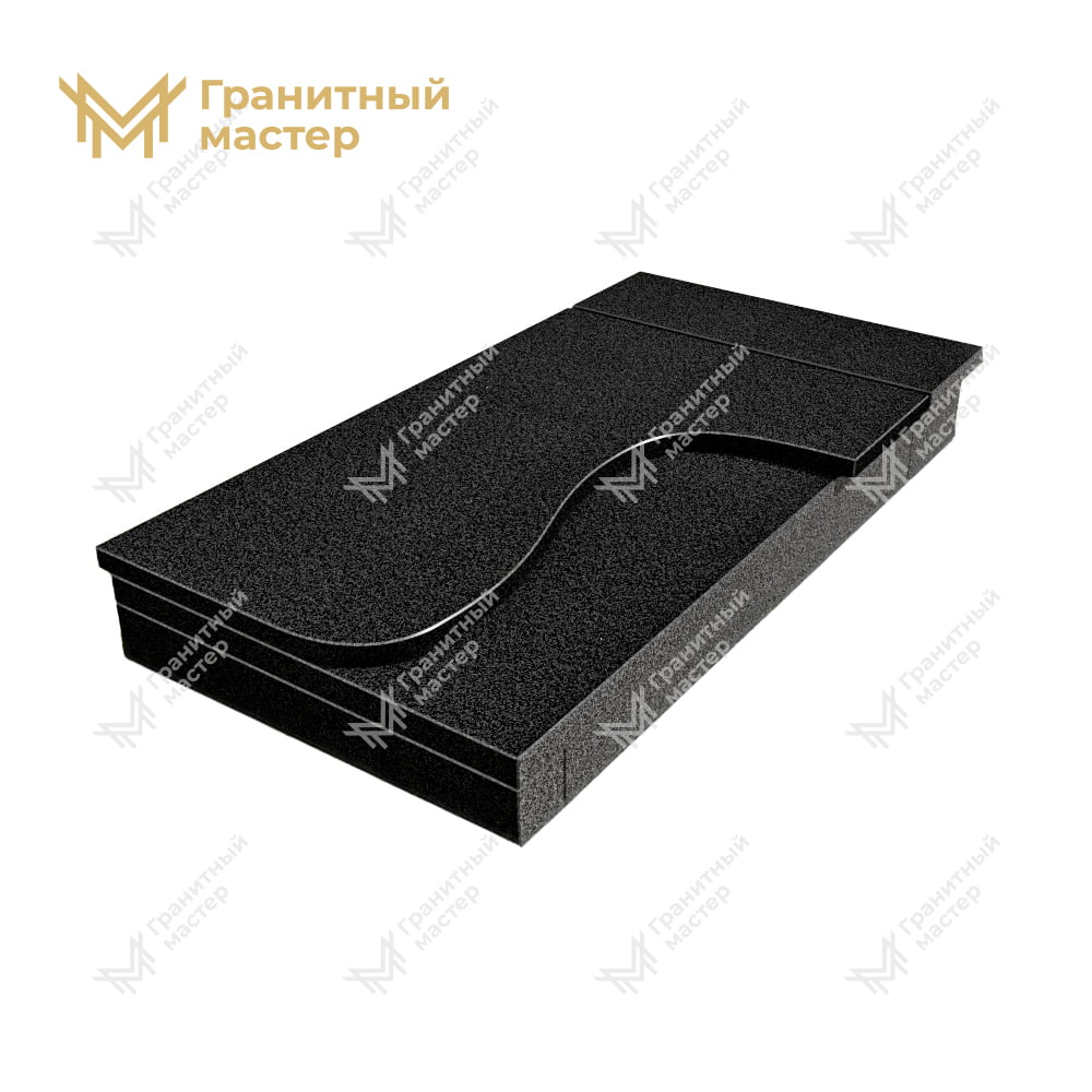 Надгробная плита ПФ-3 классической формы ступенька с добавлением волны, устанавливается на могиле прямо над захоронением. Изготавливается из цельной плиты чёрного карельского гранита диабаз. Очень часто гранитная плита дополняется граверными работами изображениями, эпитафиями или декорируется аксессуарами из бронзы.